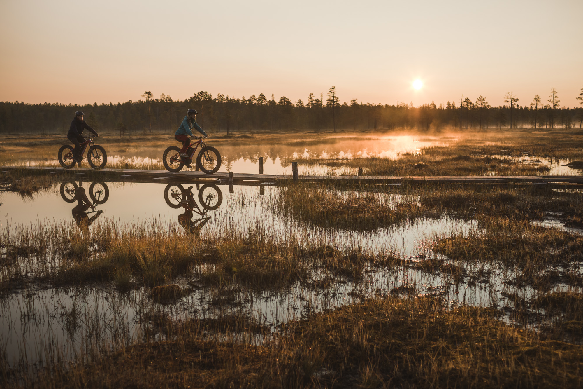 Once on the saddle, fatbike rider will get to ride though diverse Lappish sceneries from the ancient Taiga forest through wetlands, solidly frozen in winter, equipped with duckboards for summer. The fatbike routes in Pyhä–Luosto area are even beyond the national park: one will get tempted to go and give a try on any inviting looking side road and a path less traveled… And why not, because the versatile fatbike makes the perfect ride for some exploring! There is also a nice yet simple network of safe cycle lanes for the less adventurous fatbike pilots.