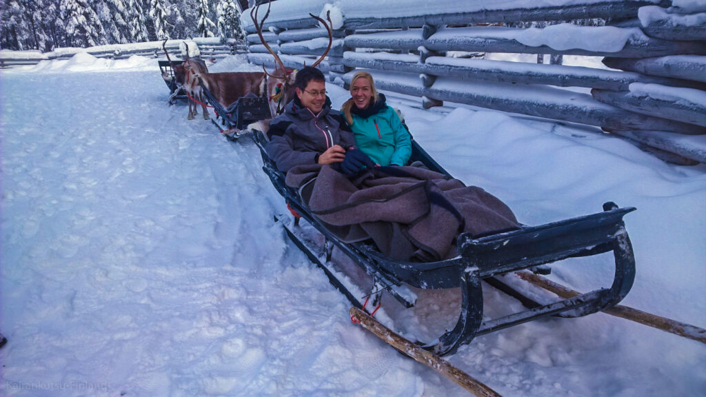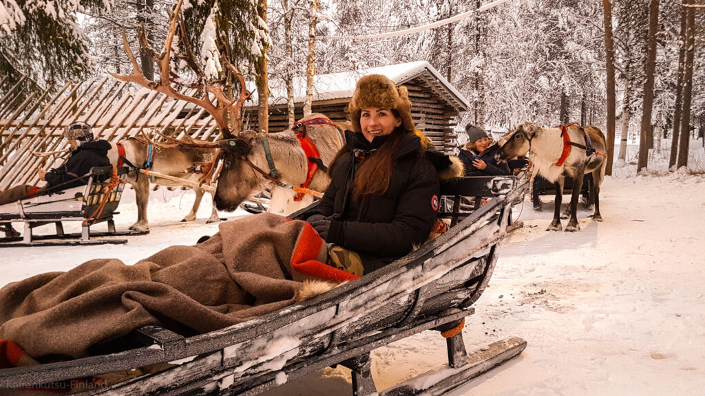 White snow, peaceful forests, and the gentle glide of a reindeer sleigh — experience the magic of Lapland from the comfort of a warm sleigh as you travel through the wintry wilderness.