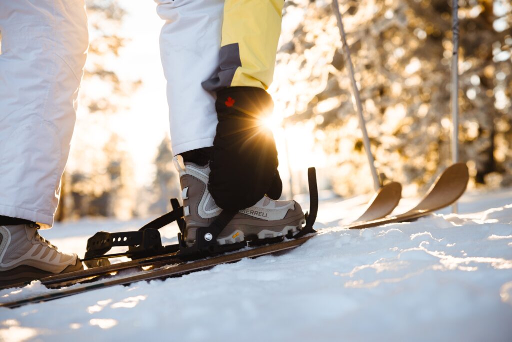For this activity, guests use their own winter boots. The ski bindings are designed to work with almost all types of regular winter footwear, so no special ski boots are needed. To keep you comfortable and dry, we provide gaiters for every participant, preventing snow from getting inside your boots while skiing. Please note that fashionable Moon Boots are better suited for après-ski photos than wilderness skiing. They are usually too bulky to fit safely into the bindings and offer little ankle support for this activity. If you have warm winter boots with good ankle support, you’re all set for a comfortable and enjoyable wilderness skiing experience.