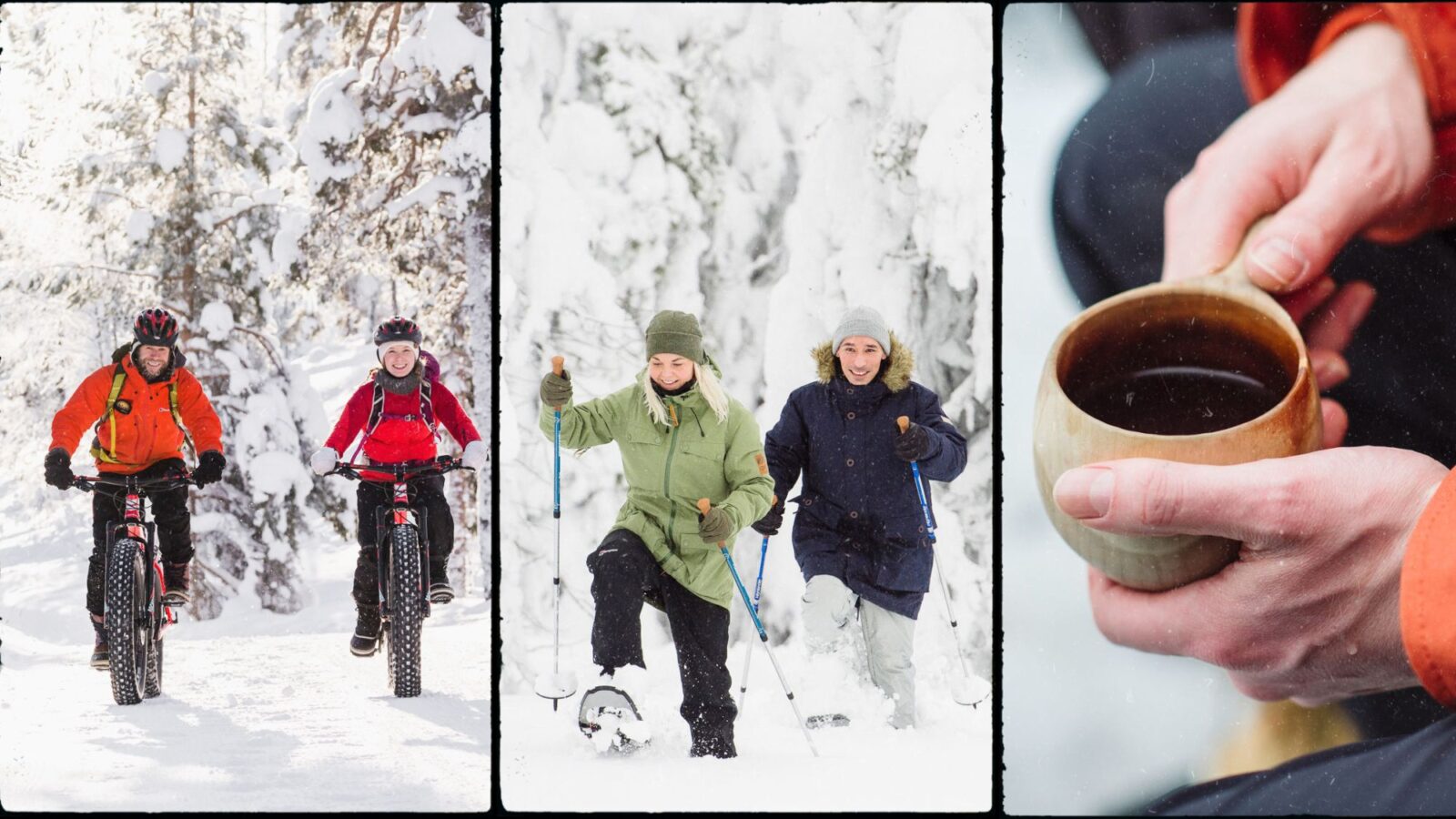 eBike to Snowshoeing introduces two fun winter activities wrapped in a time-saving combo. Hop on an effortlessly running e-fatbike, let the electric pedaling assistant flatten the snowy uphills. Follow the knowledgeable guide to the perfect place to step down from the saddle and continue through the snow-blanketed forest on snowshoes!