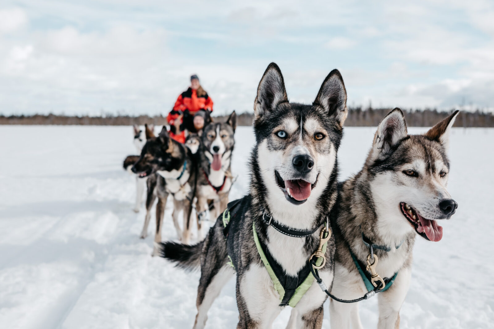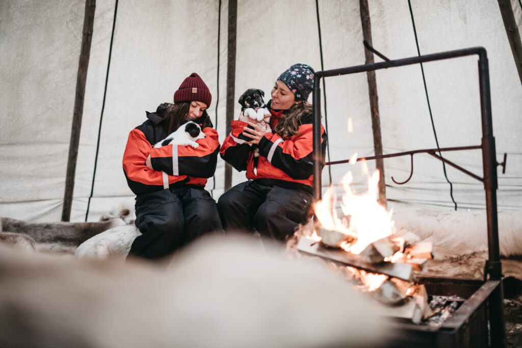 Experience a wintertime safari with a team of huskies! When arriving at the farm, the enthusiastic barking of friendly arctic dogs will welcome you. Before departing on your adventure, you'll be given instructions on how to control the sleds, which you get to ride in pairs. If you want, you may swap places at the halfway point! Black pot coffee and bun will be served during the safari in a Lappish “kota”. Once you return to the kennel, you get to hear more about life at the kennel and fascinating stories about the lovable huskies. Transfers are done by car.