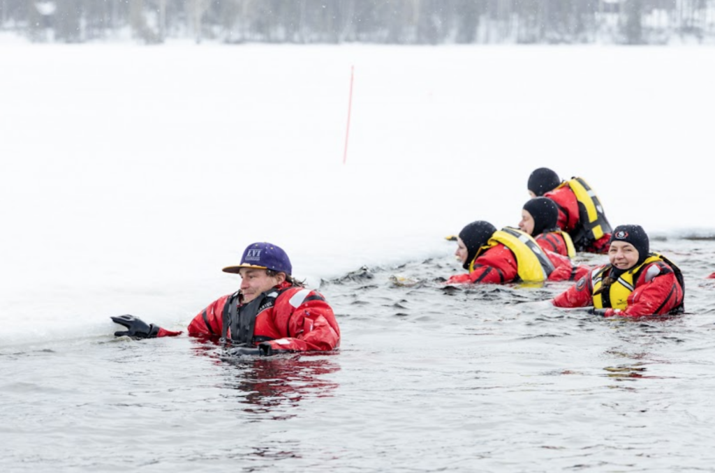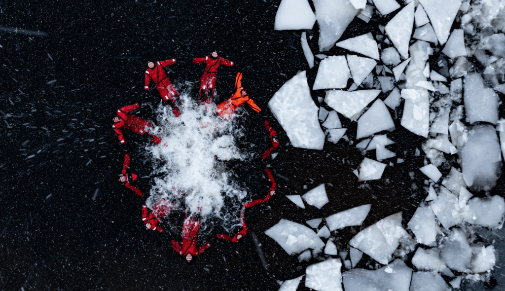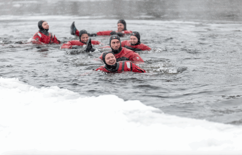 Experience what it feels like to float in icy water. You will get a dry suit that keeps you dry and warm so you can relax and focus in being present in your body.