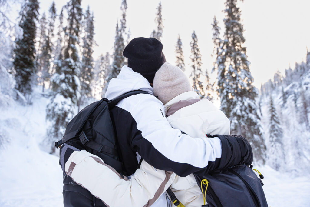 During the adventure we will hike through glorious Arctic nature and Nordic forests. We pass through three massive frozen waterfalls, which are sure to impress and create extraordinary landscape for photography. Frozen rivers and rugged gorges pierce the snowy scenery as we hike on the trail through wilderness. We rest on top of the canyon where we are afforded a splendid view over the whole canyon looking down on frozen waterfalls standing out from authentic and pure Arctic wilderness.
