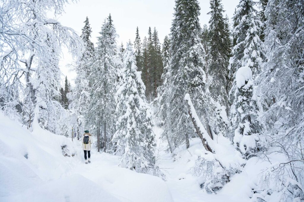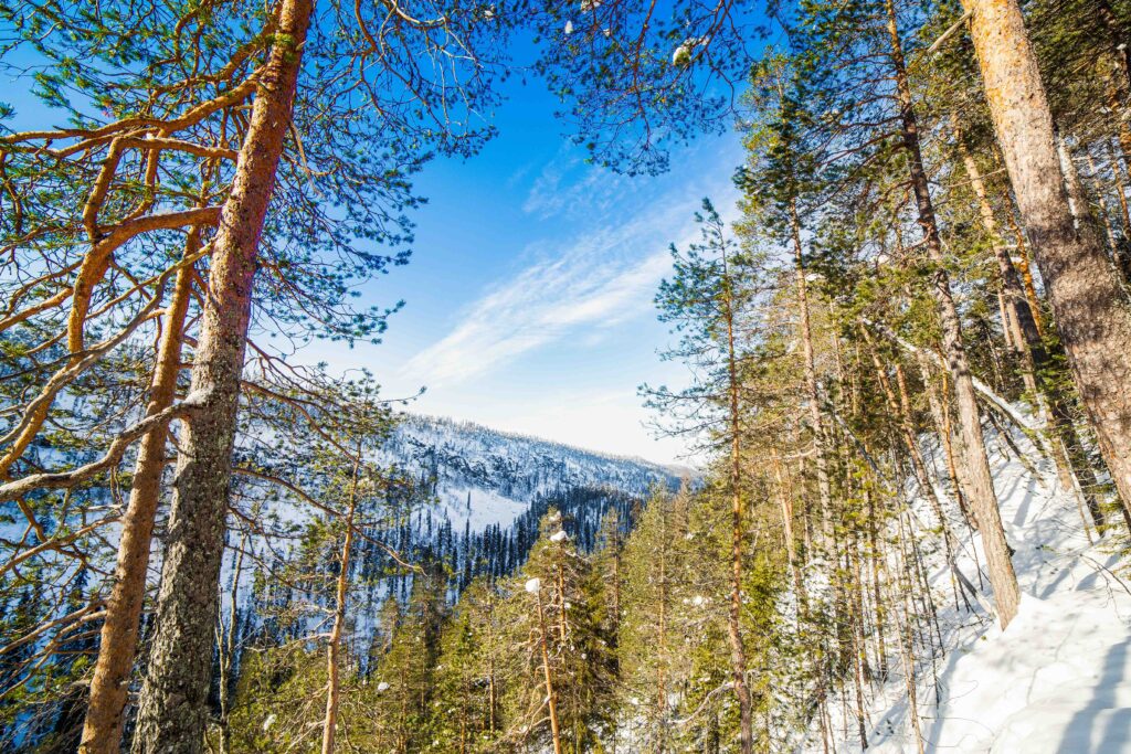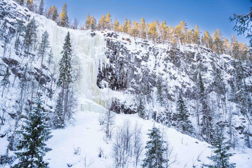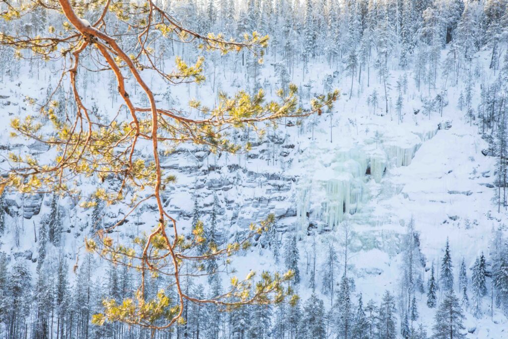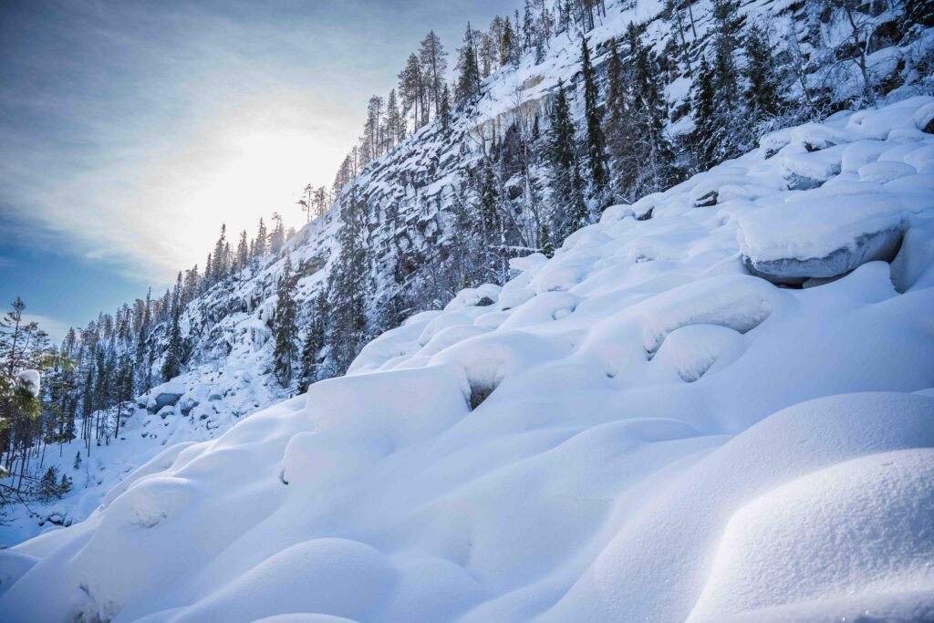 Korouoma Canyon is a natural wonder formed thousands of years ago. It lies a 90-minute drive away from Rovaniemi. In the bottom of the canyon flows Korojoki River, which is surrounded on both sides by cliffs over 100 meters high. Several streams cascade down these cliffs freezing into magnificent ice falls in the winter time.