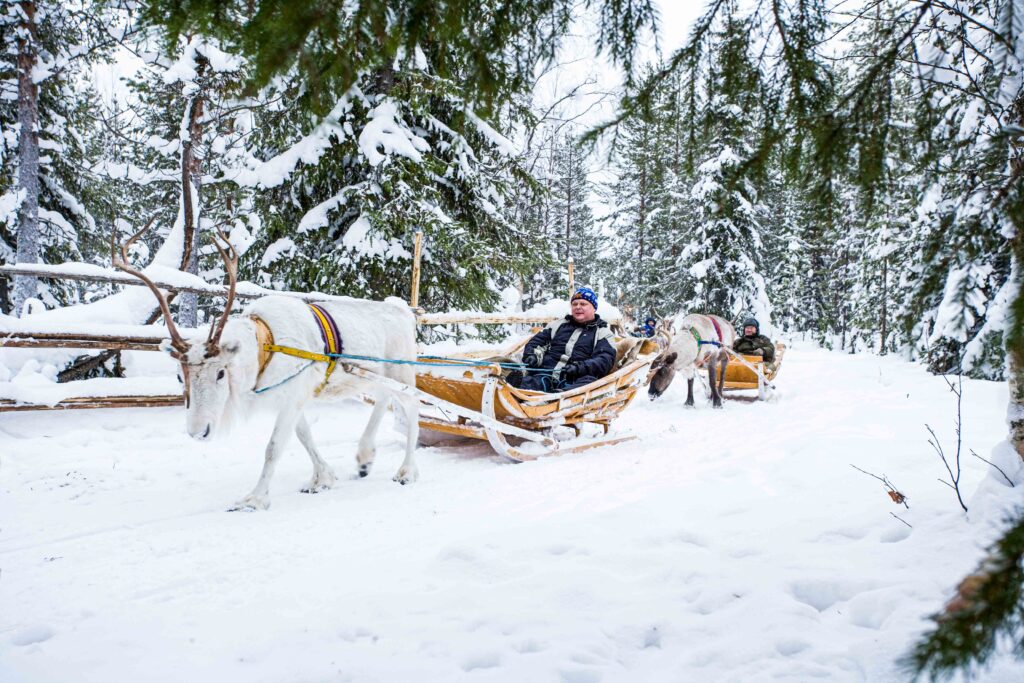 We have carefully chosen one of the most traditional reindeer farms for this 2,5 – 3 hour long tour with our photographer. During your visit you will take 2 km ride on a sleigh pulled by reindeers and get to feed them after the ride. You will also hear some stories and facts about reindeer herding in Lapland and how it is an integral part of the nature and culture in Northern Finland.