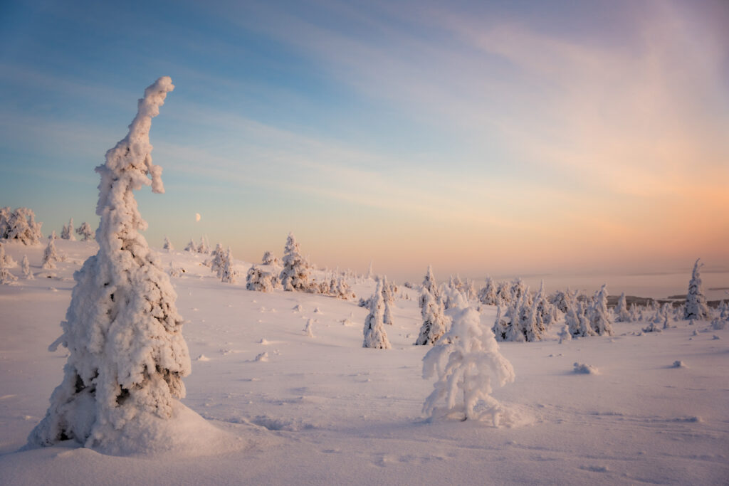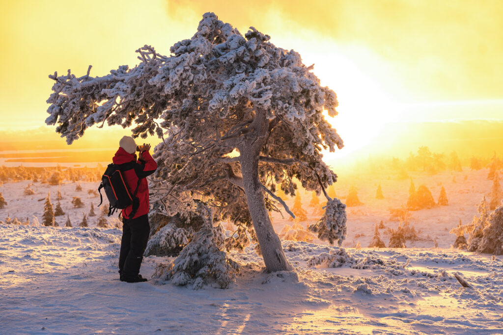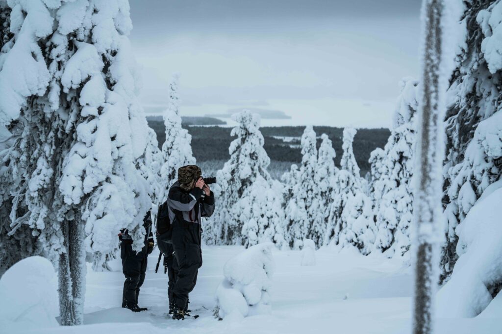 The Riisitunturi adventure is especially recommended for photographers and those with the heart of an explorer. We will climb high up the fells, to reach unforgettable views above the horizon. On the way you will experience frozen forests full of snow crowded trees and amazing views opening around us when we climb higher on our journey. On the way we will have multiple photography stops to capture the amazing Arctic nature around us.