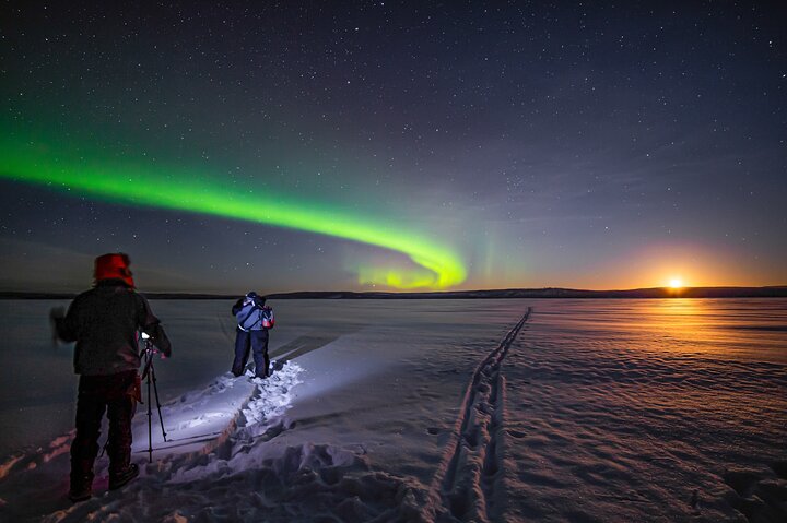 Join this incredible 4-5 hour hunt for the Northern Lights in Rovaniemi area. A professional Northern Lights photographer will guide this small-group tour and teach you the basics of Northern Lights photography. The tour's approach gives you the best possible chance to find and get professional, edited photos of the Northern Lights during your stay here in Lapland, as your guides always choose the destination according to weather and Aurora forecasts. Small group sizes and our experienced professional guides give you the most exclusive and memorable way to experience the magnificent Northern Lights.