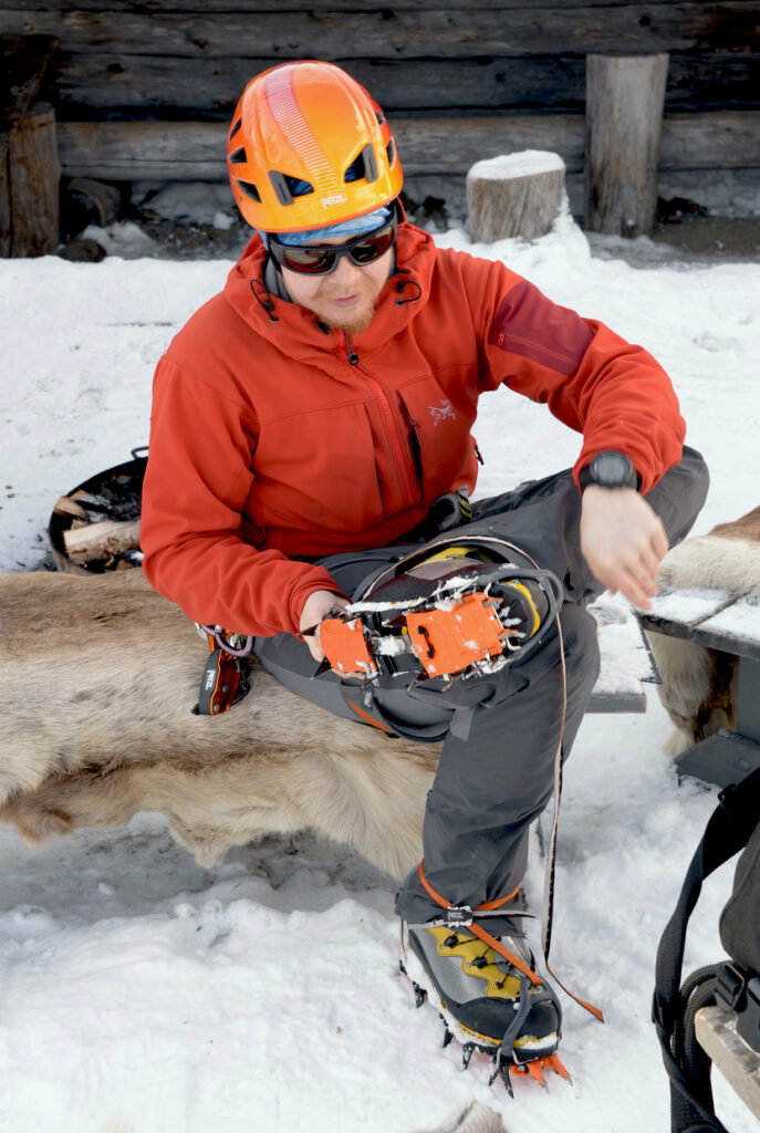 Suitable personal clothing for winter weather including proper (ski) gloves or mittens. Please also bring a balaclava or a simple woolen hat without bobble / pompom that will fit under climbing helmet. Complimentary hot berry beverages included. Please consider bringing some snacks like nuts, energy bars or chocolate (caution: keep chocolate in a pocket inside of your jacket, otherwise it will freeze).
